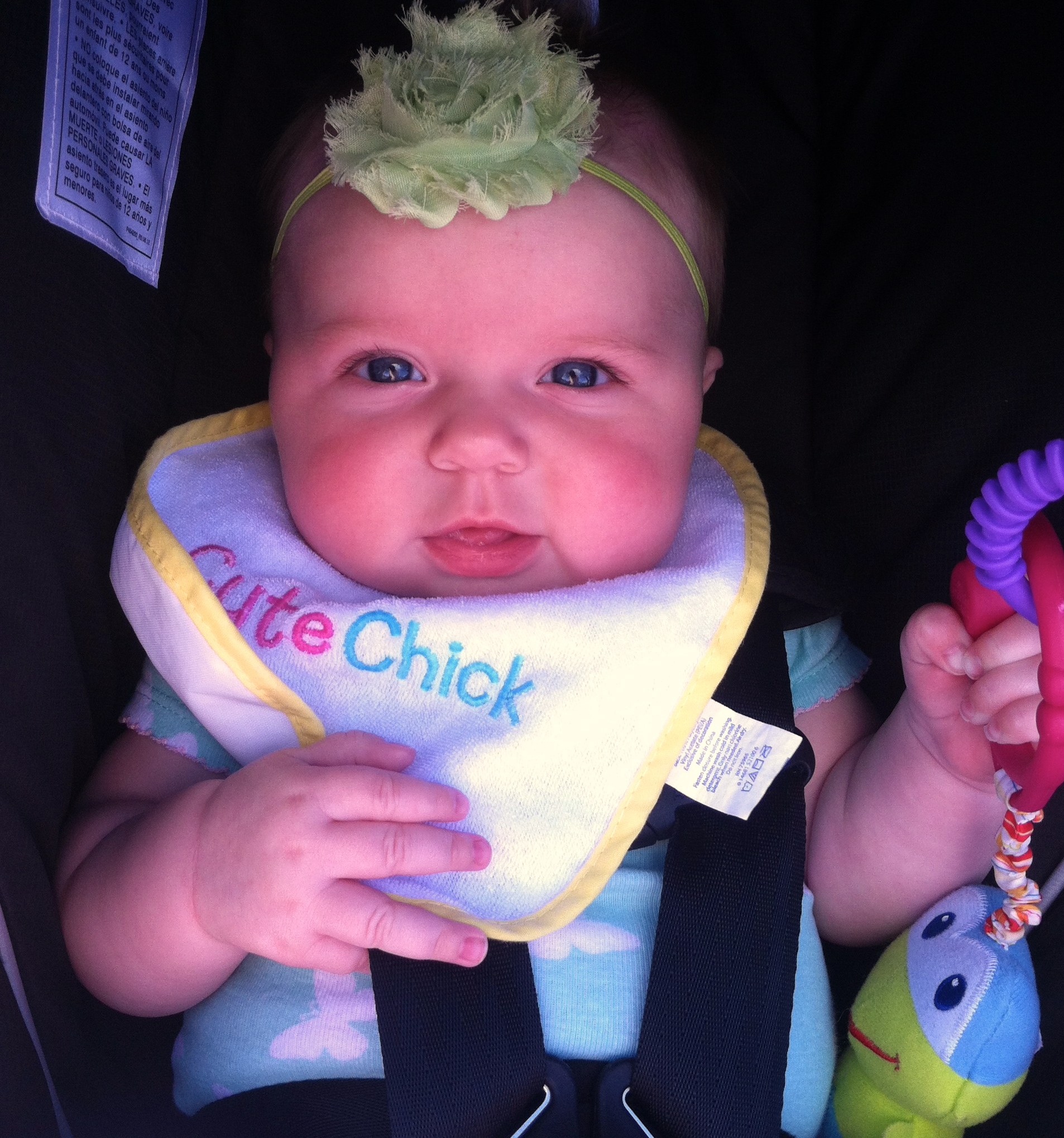 We have her four month checkup in a few weeks and we’ll learn how much she weighs and her height at that point. We’re excited to see how she’s growing!