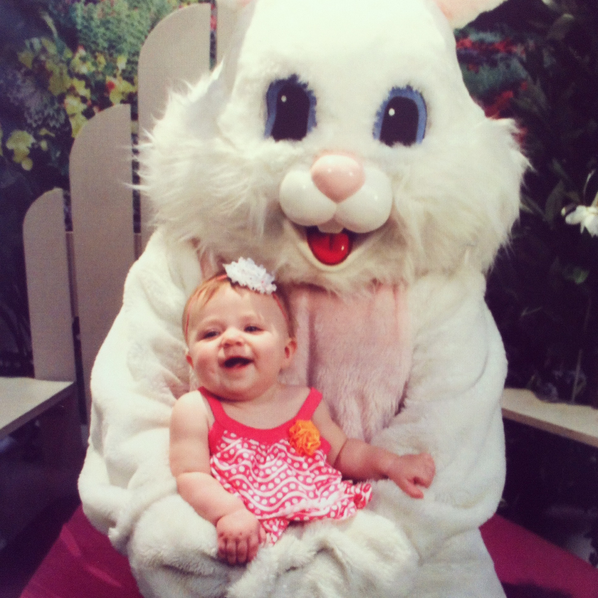 She saw the Easter Bunny, and loved him! No crying child here, folks.