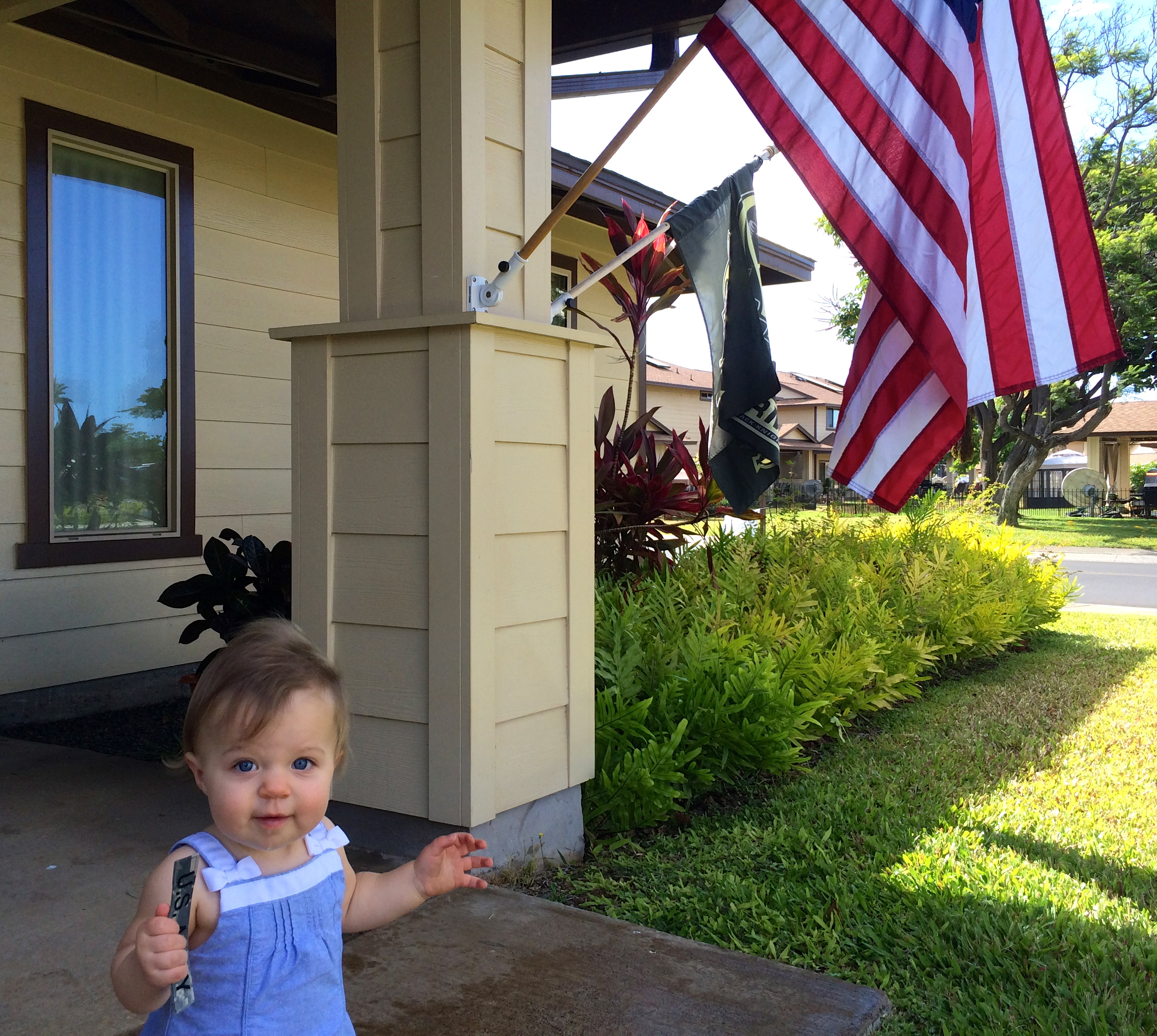 While we were in Vegas, we took her to the local splash park for the first time with her cousins, Audrey and Beau. She LOVED it, as we figured she would. She truly loves being outside and really enjoys playing in the water. The heat in Vegas was a bit more intense than in Hawaii, and the splash park make playing outside more bearable for everyone. (To read about our trip and see more photos, please visit that blog post.)