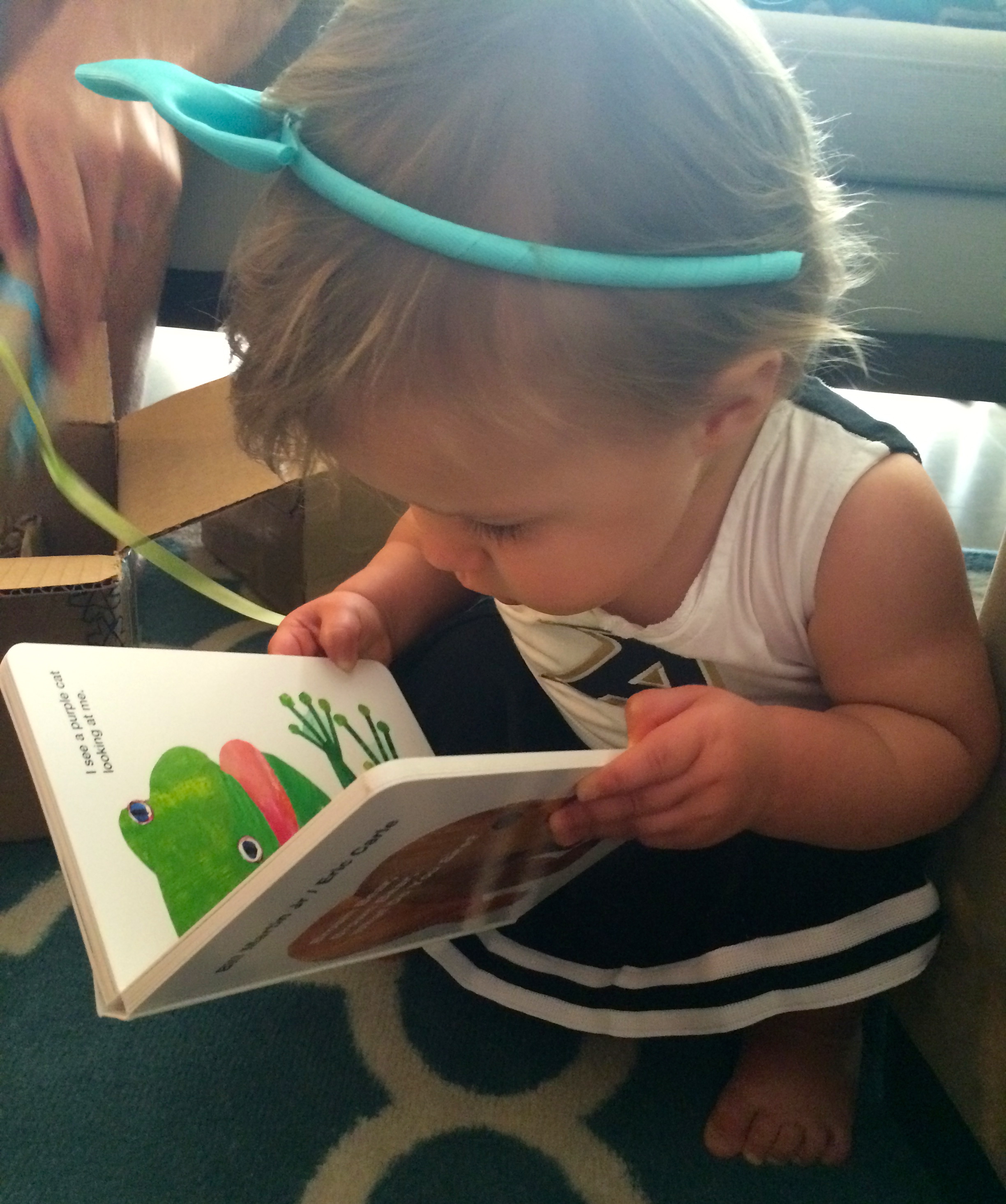 She opened presents at both parties, too, and particularly liked anything related to books or Sesame Street.