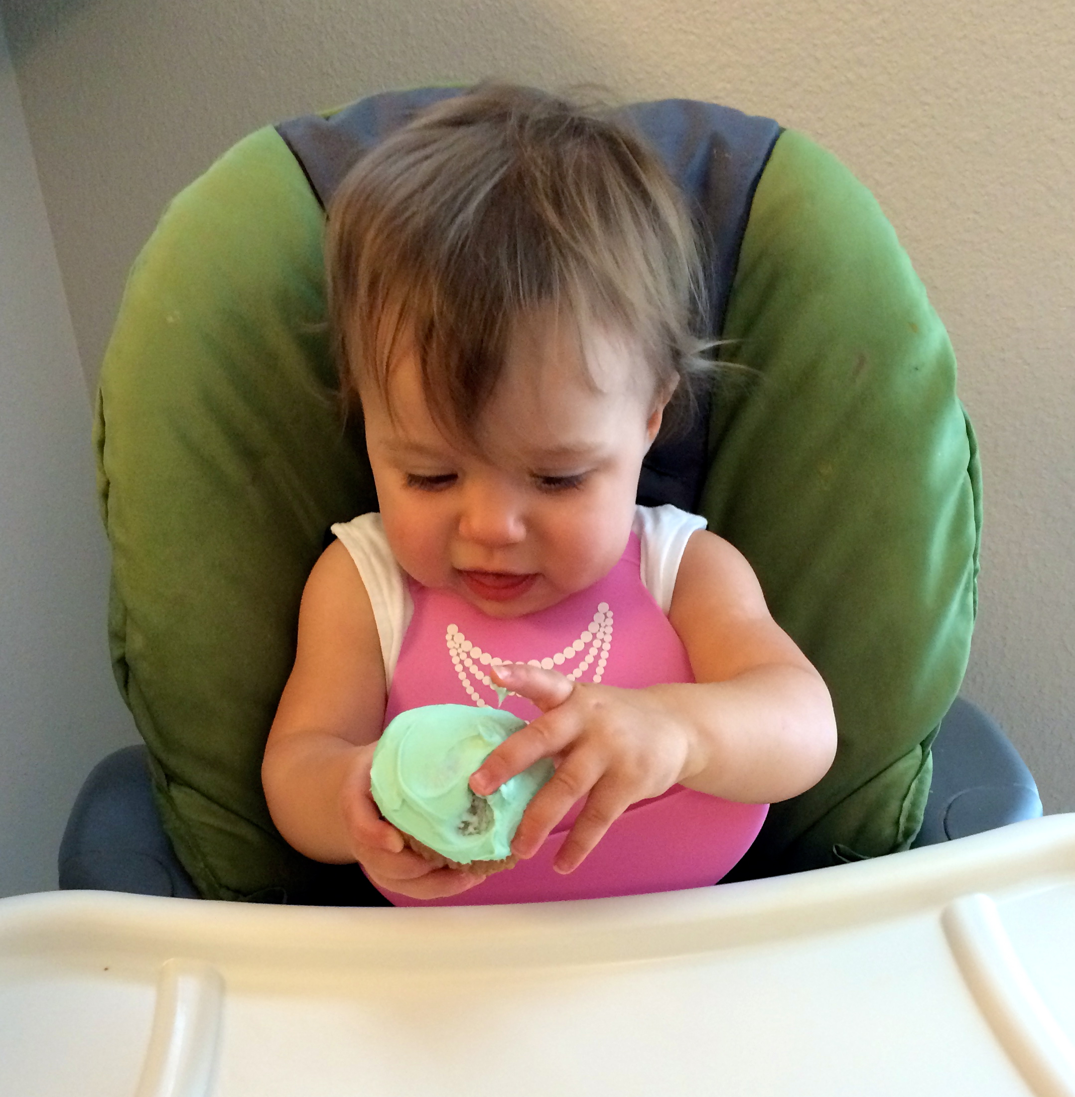 We had cake at both parties, and both times Liesl was much more interested in the frosting than the actual cake. In fact, she liked to play with it between her fingers more than she liked actually eating it.