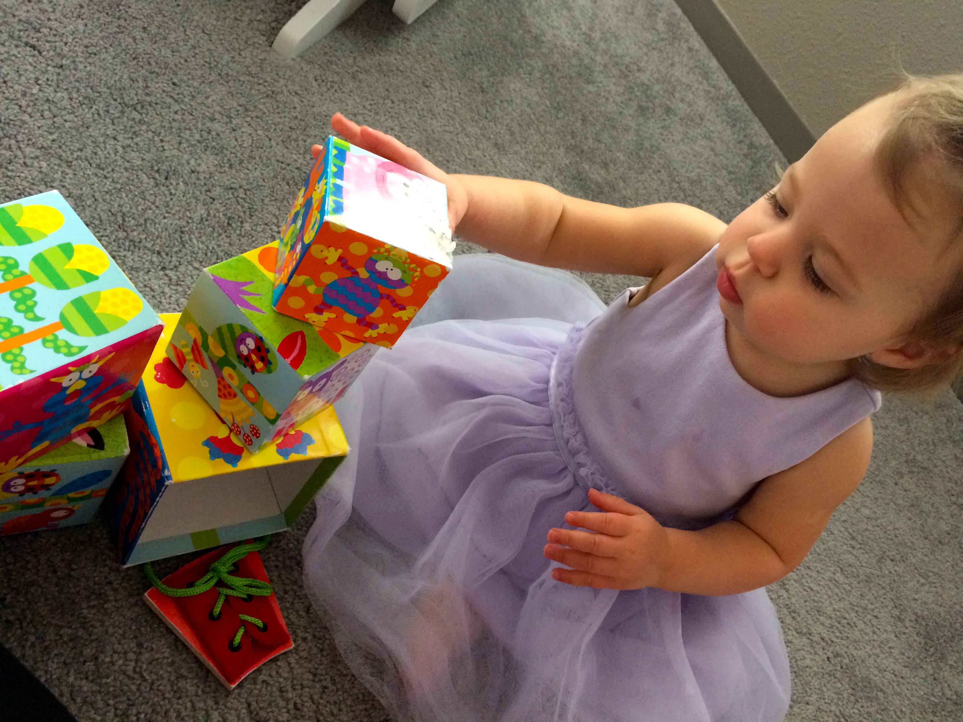 Liesl in general is a very active, very playful little girl. She’s pretty fearless, and loves to explore her surroundings through touch, taste, and exposure. All of this can be terrifying as a parent, but I suppose that’s just par for the course, right? It’s been super fun to watch her learn and grow every single day. She recently started to enjoy stacking her boxes/blocks, pushing everything around the house (e.g. the laundry basket, our bar stools, the diaper boxes, etc.), taking her diaper and placing it in the garbage bin (best trick ever!), and crawling her way onto the couch. She’s still learning how to go down the stairs backwards, but based on her physicality my guess is she’ll figure it out soon enough.