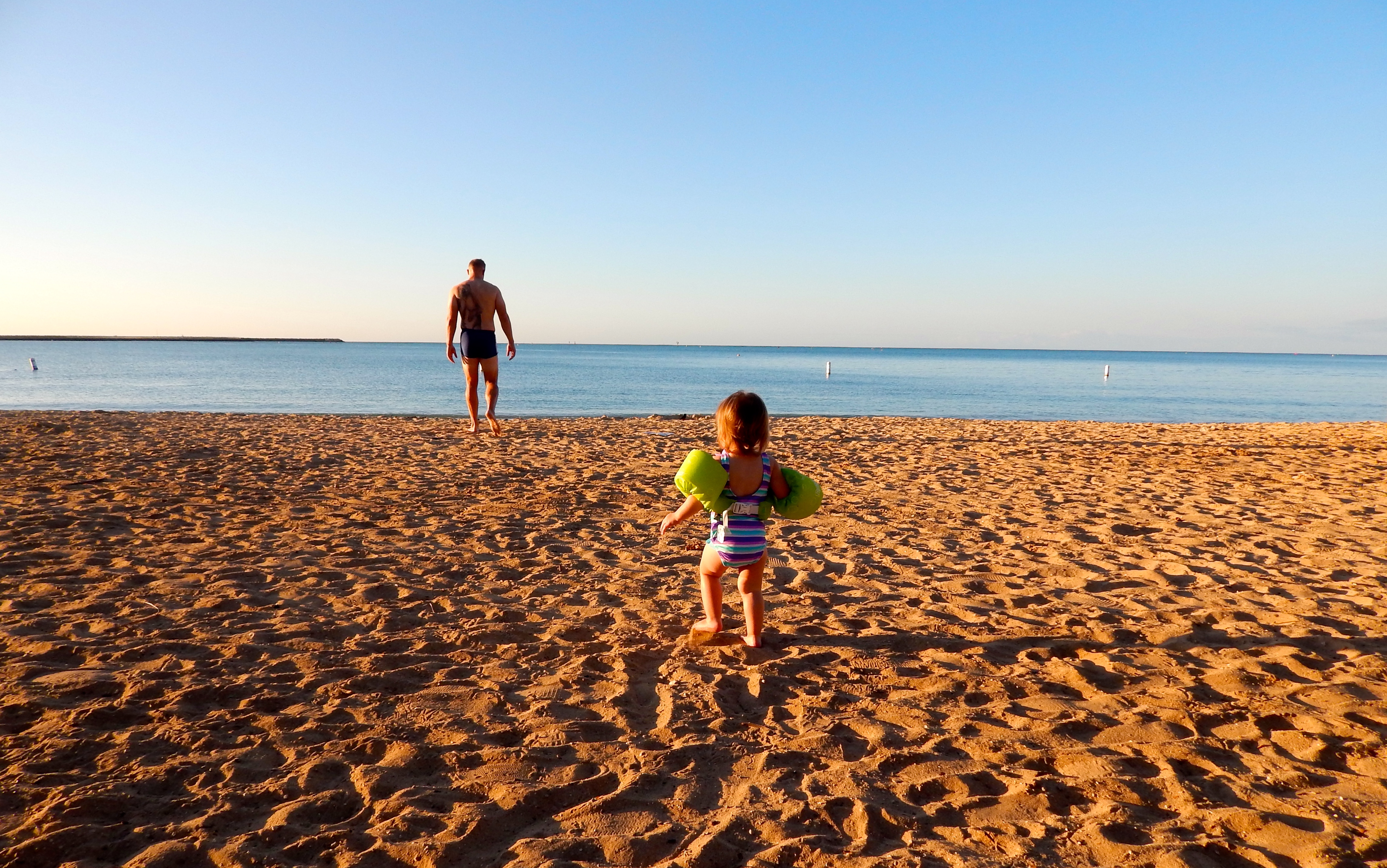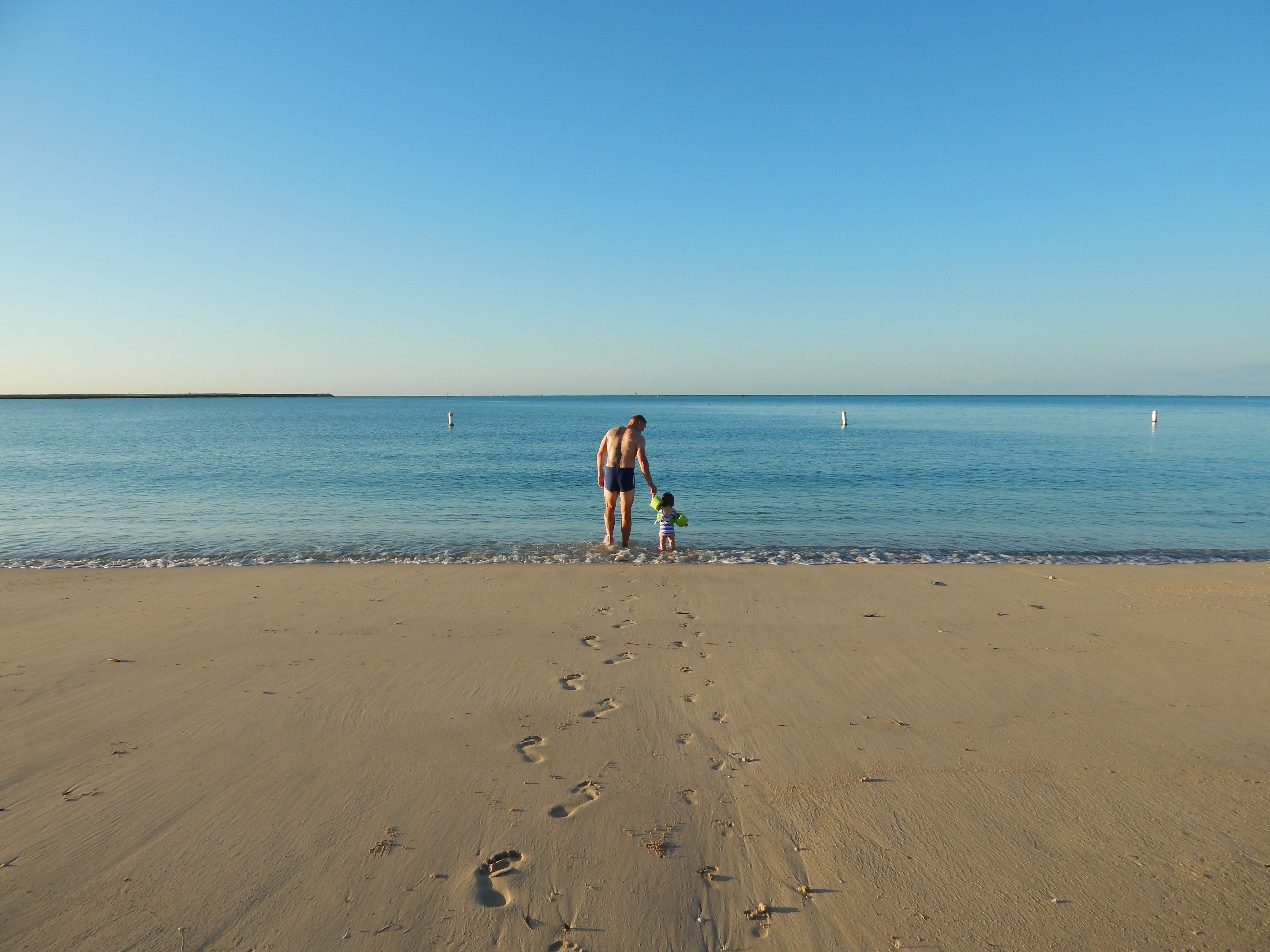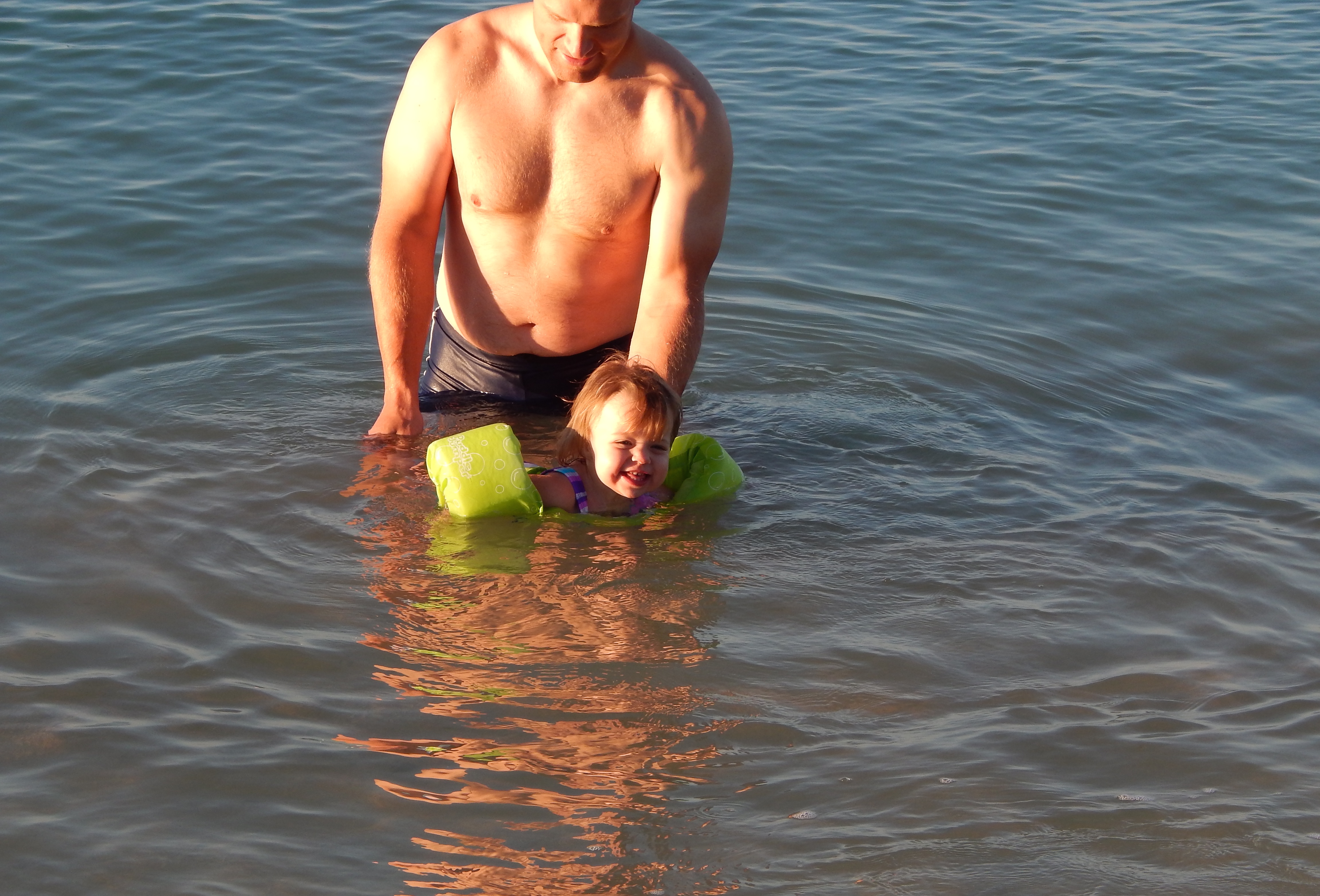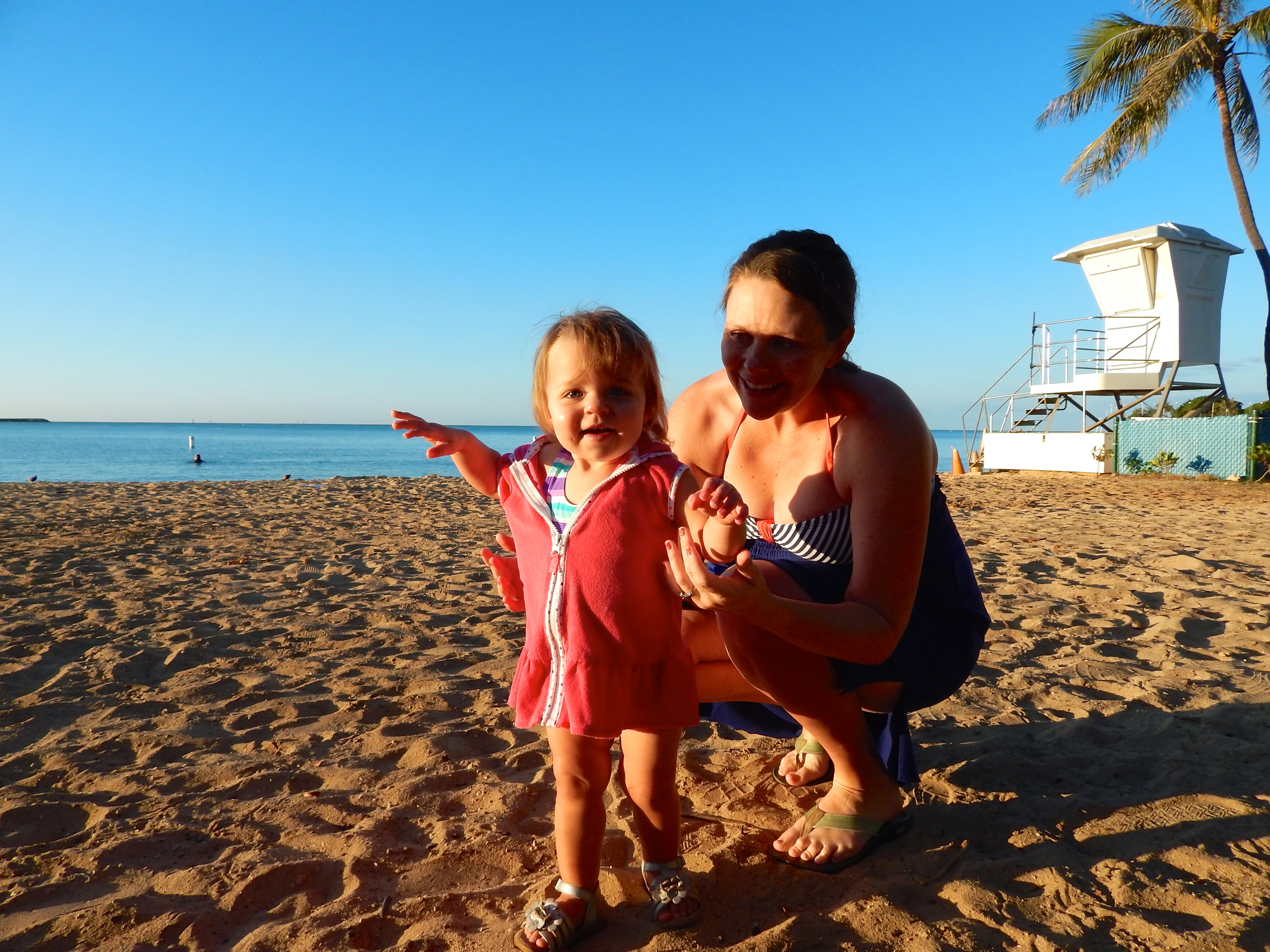 Although Pete and I like the beach, we’ve avoided it with Liesl mostly because of the mess and hassle factor. Today, however, we took her to the beach to see if she’d enjoy it or not. She loved playing in the water and kicking her legs, but hated the taste of salt water (no surprise there), the sand in her swimsuit, and how cold she felt after getting out of the ocean.
