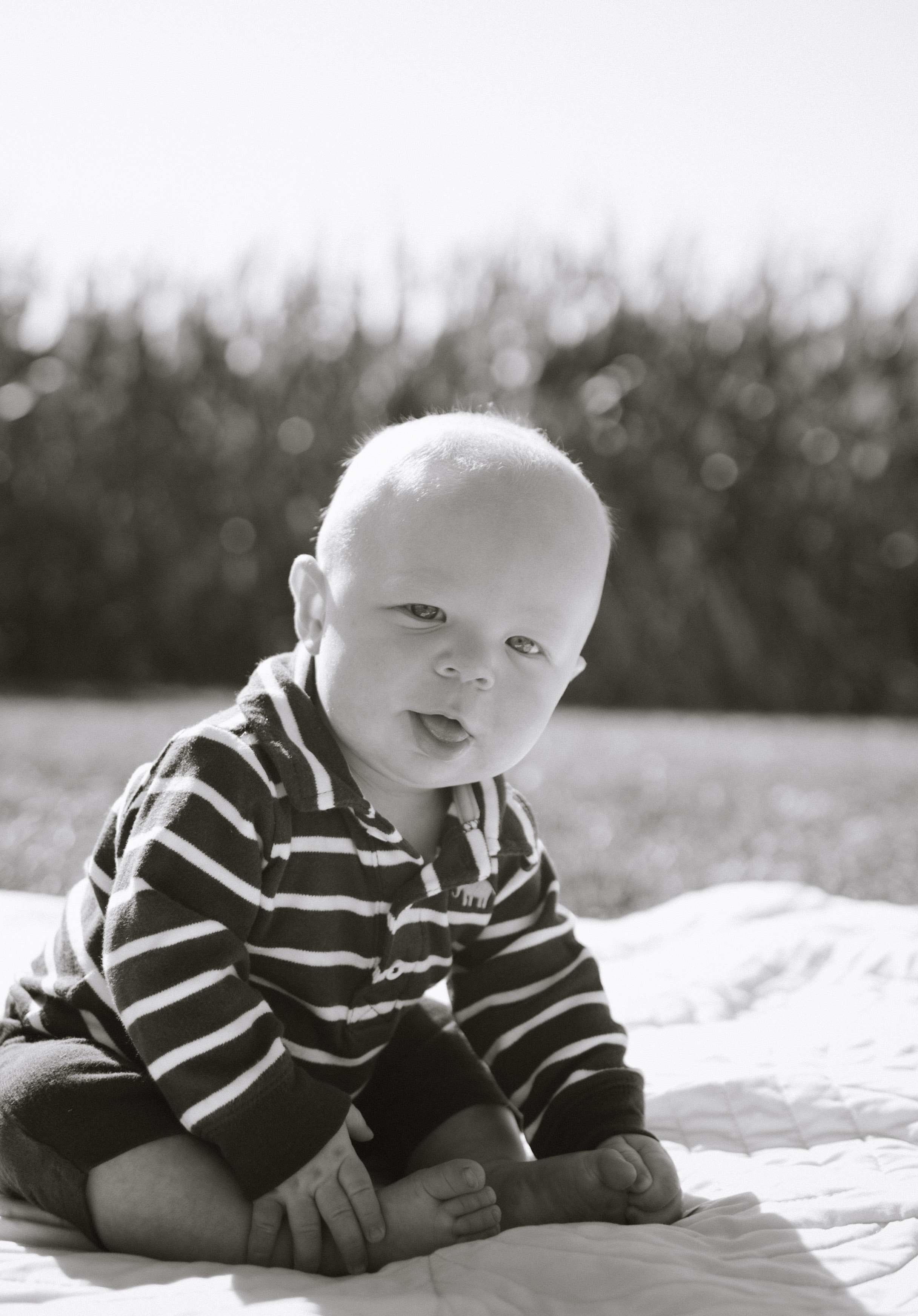 Our little man has been rolling over for a few months now, and has recently started sitting up all on his own — such a big boy! He likes having his hands free so he can play with more toys and put them in his mouth.